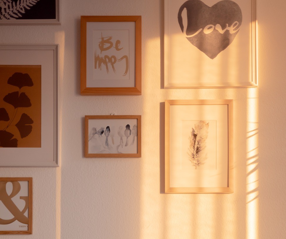 Once you find your designated area for your art, go ahead and hang the frame using a hammer and nails. Consider purchasing frames that include the white mat inner piece to emphasize the art and make it appear more realistic. Before hanging the frame, remember to remove the glass face and cardboard backing. You won’t need those two pieces, as your art will be hung directly on the wall’s surface. Use a level to ensure your frame is straight.
