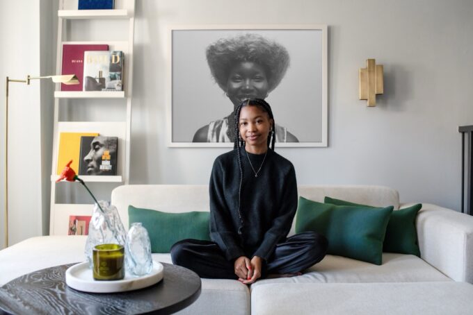 “It feels very open and inviting,” Sow says of her space. “I love the touches of color—it doesn’t feel overwhelming, just the exact right amount for the space.” This thoughtful restraint is evident throughout, where carefully chosen statement pieces are given room to breathe.