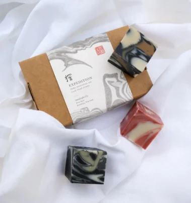 This marbled soap set turns a simple cleanse into a small luxury. Each hand-poured cube is made with kaolin clay, nourishing plant oils, and essential oil blends that range from citrus to woodsy. Biodegradable and travel-friendly, it delivers a gentle lather that leaves skin soft—not stripped—while looking beautiful on any bathroom counter.