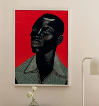 This portrait print adds depth and presence to any room. Printed on museum-quality etching paper with archival inks, the artwork has a rich, textured finish that makes the colors feel dimensional. Created by a Black-owned studio, it’s available in multiple sizes, making it easy to style as a standalone statement or as part of a refined gallery wall.