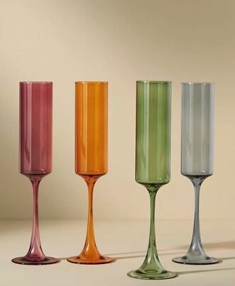 If you have a flair for the dramatic, check out these bold and colorful champagne glass cups that are the perfect addition to your tablescape. Each cup is creatively crafted to feature a unique funnel bowl design. And their bright colors can add a pop of personality to your home decor.