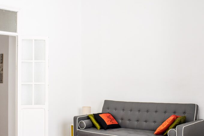 Building the unit was just the beginning. Once it was up and placed in the crook of the corner to elongate the space, it was time to decorate. Making an awkward space feel warm and inviting is all about infusing it with personal elements. In this case, Anselmo leaned into her love of music and bold artwork to give it a distinct feel. She explains that creating a mood board for the space is the best way to ensure you’re sourcing pieces that feel cohesive.