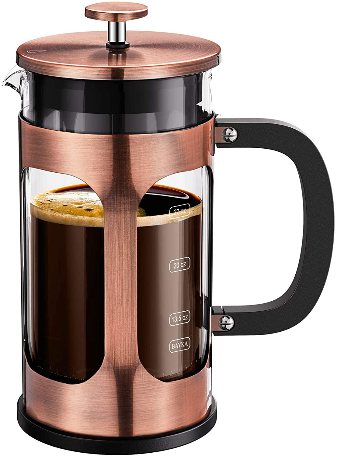 Here's another budget-friendly French press. The Espro Press is made for those who want their cup of java quick, fast, and in a hurry! Unlike other French presses, this Espro Press has a double micro-filter to ensure those coffee grinds don't slip in your cup of joe. This French press also has a sophisticated extraction that will prevent your coffee from tasting bitter over time. While this French press may not be as big as the others ( you can always go bigger because the Espro Press has a few size options), you'll be at ease knowing that your brews taste fresh after every use.