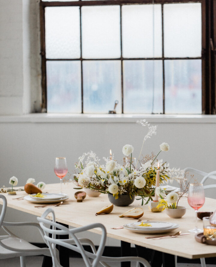 For the “girl’s, girls,” there’s nothing like a classic table lined with white roses or any white floral of choice, touched with pink bow trimmings. This is great for a Galentine’s, birthday, or simple girls’ gathering.