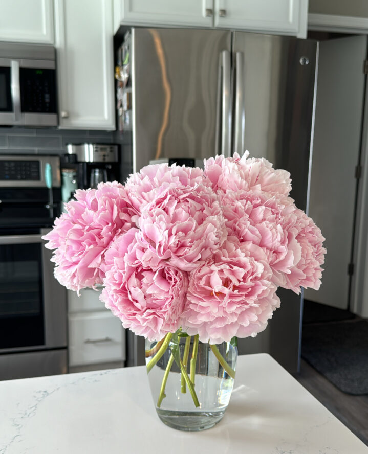 There’s no denying the appeal of a classic glass vase, especially when it comes to peonies. While there are a few shapes that deliver a traditional look, a circular vase is even more alluring. Plus, it has a trendy look that’s perfect for starting conversations, whether in person or online.