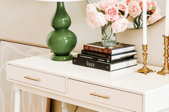 She then added creamy white furniture to offset the depth and bring light into the room. However, the goal was to maintain a moody look, which meant dimming the natural light. Choosing the right window treatments can be a tricky task. Blinds often let in too much sunlight, while room-darkening curtains can be too heavy. However, Abdul found a happy medium with Roman Shades and opted for a custom color to match her new office.