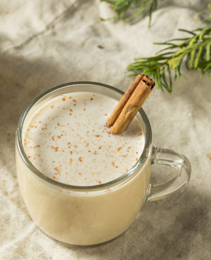 The classic recipe combines one 15-ounce can of cream of coconut, one 14-ounce can of sweetened condensed milk, one 12-ounce can of evaporated milk, 1 cup of white rum (such as Bacardi), 1 teaspoon of vanilla extract, 1 teaspoon of ground cinnamon, and ½ teaspoon of ground nutmeg. Blend all ingredients until smooth, bottle, and refrigerate for at least 4 hours before serving. Shake well before pouring and garnish with a cinnamon stick.