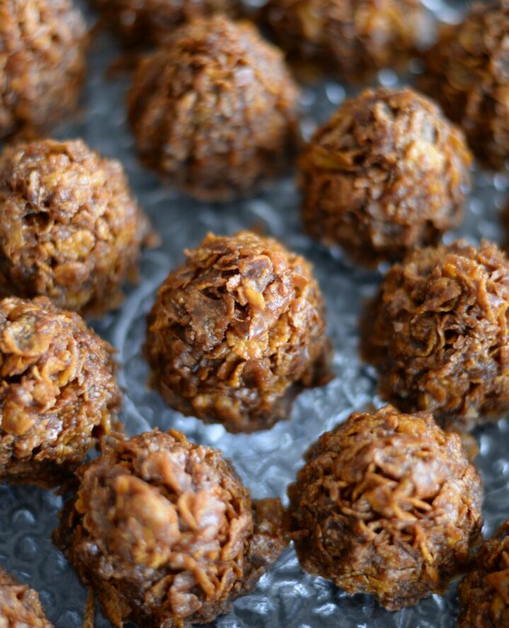 This snack is made by blending dates, almonds, coconut and cacao powder, then rolling them into balls. While cocoa powder is often seen in grocery stores to make hot chocolate, cacao powder has a slightly different taste. Cacao, which is made from fermented and roasted raw cacao beans and nibs, has more sugar than cocoa but is on the bitter side.