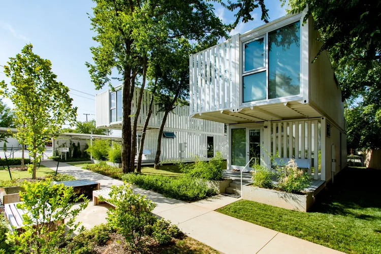 Venture to Oklahoma City’s Tornado Alley to visit this apartment complex complete with its own tornado bunker. Alfred Hall Monaghan Morris created this masterpiece of four two-bedroom units from 16 individual shipping containers.